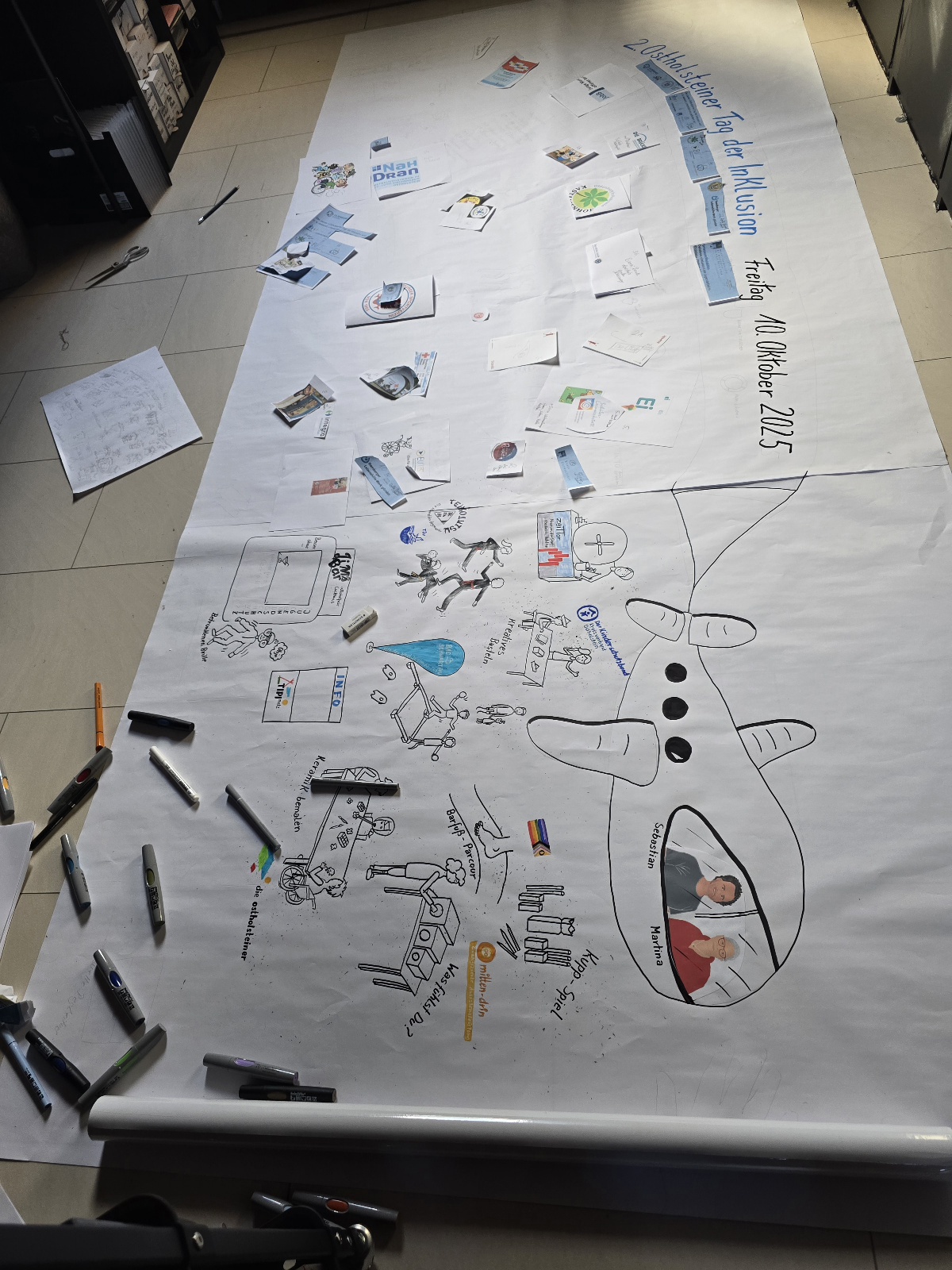 Ich durfte diesen mit einem Plakat begleiten und während der Veranstaltung die Stimmen der Akteure und Teilnehmer aufnehmen. Um auch mobil eingeschränkten Teilnehmenden die Möglichkeit der Mitgestaltung zu geben arbeiteten wir teils am Tisch und klebten die Ergebnisse auf.